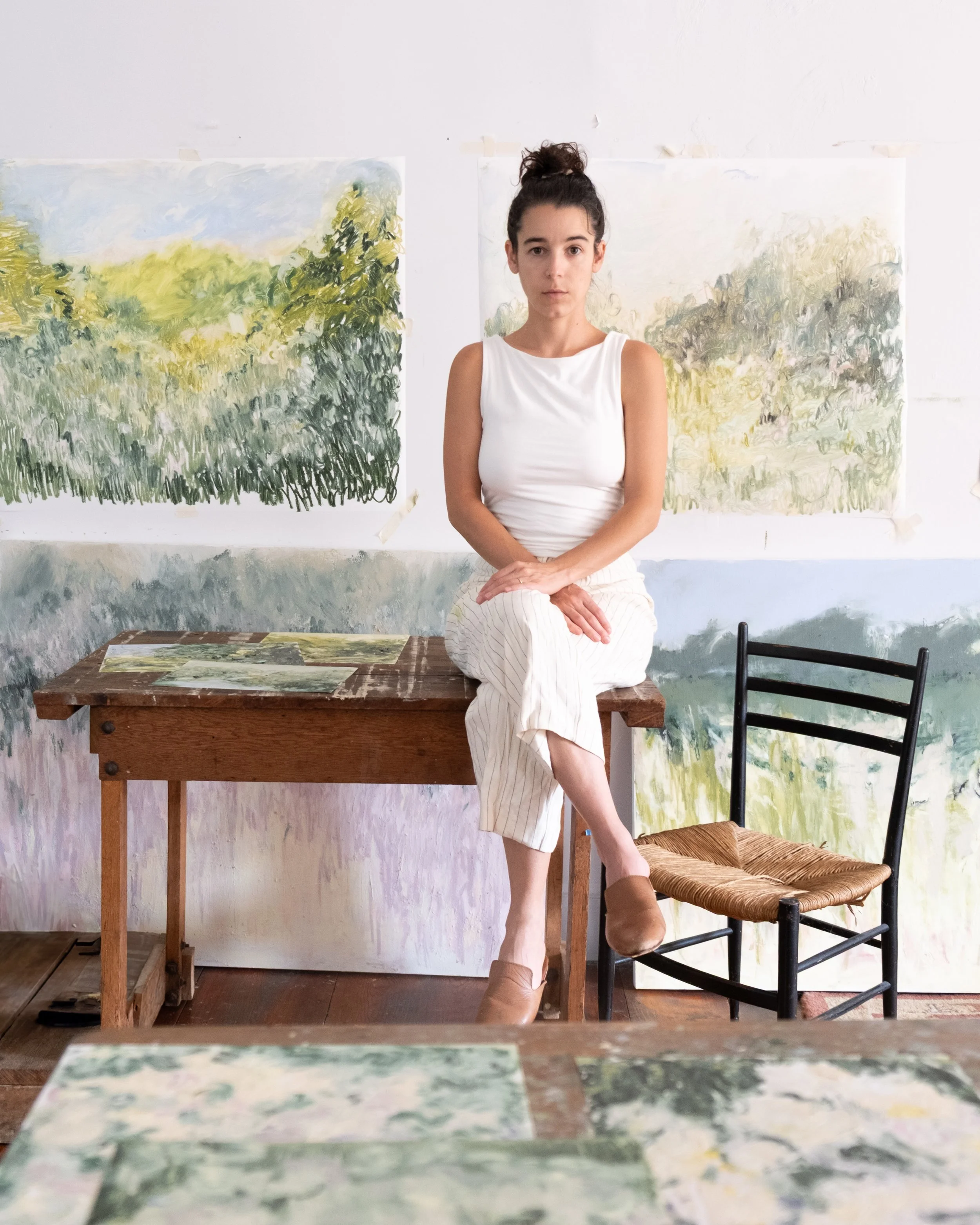 Raised on Slavic stories in an American suburb, I spent my childhood searching for secrets unfurling from flower buds, flowing between rocks, buried under fallen leaves, and whispered on the wind. Now settled, nestled in a sub rural hollow where two creeks converge in a regenerating wetland, this practice has permeated my approach to painting.My paintings are rendered loosely, wildly, with oil sticks and hands on a slippery surface of Yupo paper. This raw imagery is a response to shifting seasons, changes in vegetation, celestial passages, the swelling and ebbing of water. Later, I revisit these works and write short stories in response to the memories that arise. My words describe this place and its inhabitants, the forces of nature, my dreams, and experiences of stewardship and motherhood. The work holds a record of my relationship with the land.