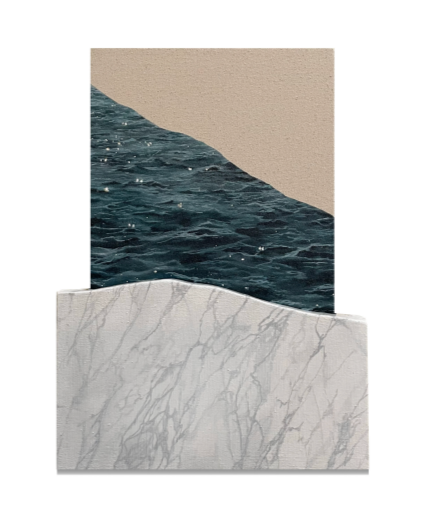 Brown's work brings into question perspective between collaged elements from the natural world and urban textures. Through color shifts and layering, his work explores themes of time and attention, focusing on the value of moments and objects that are either over-romanticized or overlooked. Brown's practice involves carefully observing and documenting materials, landscapes, and colors that impact day-to-day life.